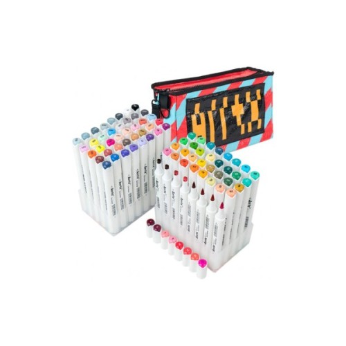 Комплектация: 80 маркеров. 3 решетки с 3 подставками для размещения маркеров. Карточка для образцов цветов. Открытка. Наклейки. Тканая сумка для переноски.