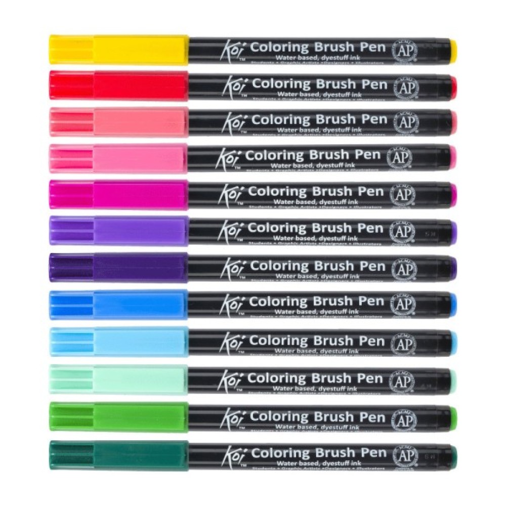 Маркери-пензлі KOI від SAKURA створюють чудові роботи, будучи альтернативою класичним акварельним фарбам та пензлям.Товщина лінії змінюється, залежно від сили натиску на стрижень.Гнучкий нейлоновий пензель маркера дуже стійкий, та швидко повертається до початкової форми.Маркери на водній основі, легко змішуються між собою, і створюють делікатне нашарування кольорів.Можна розмивати водою. При роботі із блендером можна досягнути плавного переходу кольору і створити ідеальний градієнт. Найкращий результат проявляється на цупкому папері - гладкому або акварельному, але не на глянцевому. Для ілюстрацій, скетчів, технічного рисунку (для архітекторів), журналінгу, друку із резиновими штампами, в техніках манга, комікси, мультиплікації, скрапбукінг та кардмейкінг. Асортимент: 48 прозорих кольорів, які при змішуванні утворююь нові відтінки; набори із 6,12, 24 и 48 шт.Виробник: SAKURA (Японія)