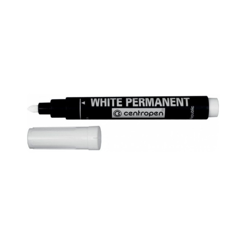 Білий перманентний маркер для стійких написів практично на будь-якій поверхні. Чорнила на водній основі - не просочуються крізь папір, світлостійкі. Напис стійкий до впливу вологи, стирання, атмосферних впливів. Круглий пишучий вузол. Ширина сліду 2,5 мм. Вузол витримує велике навантаження без деформації. Маркер потрібно зберігати в горизонтальному положенні. Не висихає без ковпачка протягом 5 днів. Ідеальний для напису на темних поверхнях.