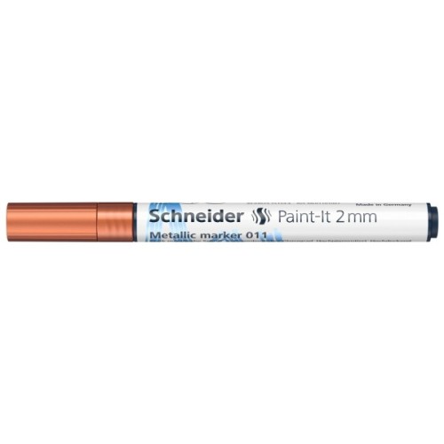 Металік маркер для надзвичайних ефектів. Надає кожному проекту особливий вигляд. Ширина тонкої лінії прибл. 2,0 мм. Колір чорнила мідний металік. Нова технологія пігменту забезпечує чисте та однорідне нанесення кольору. Алюмінієві лусочки, вкриті кольоровими пігментами, створюють сильний металевий ефект із надзвичайно високим рівнем блиску навіть при різному освітленні. Підходить для багатьох поверхонь. Найкращі результати на темних поверхнях. Чорнило, що швидко висихає, ідеально контролюється клапаном.