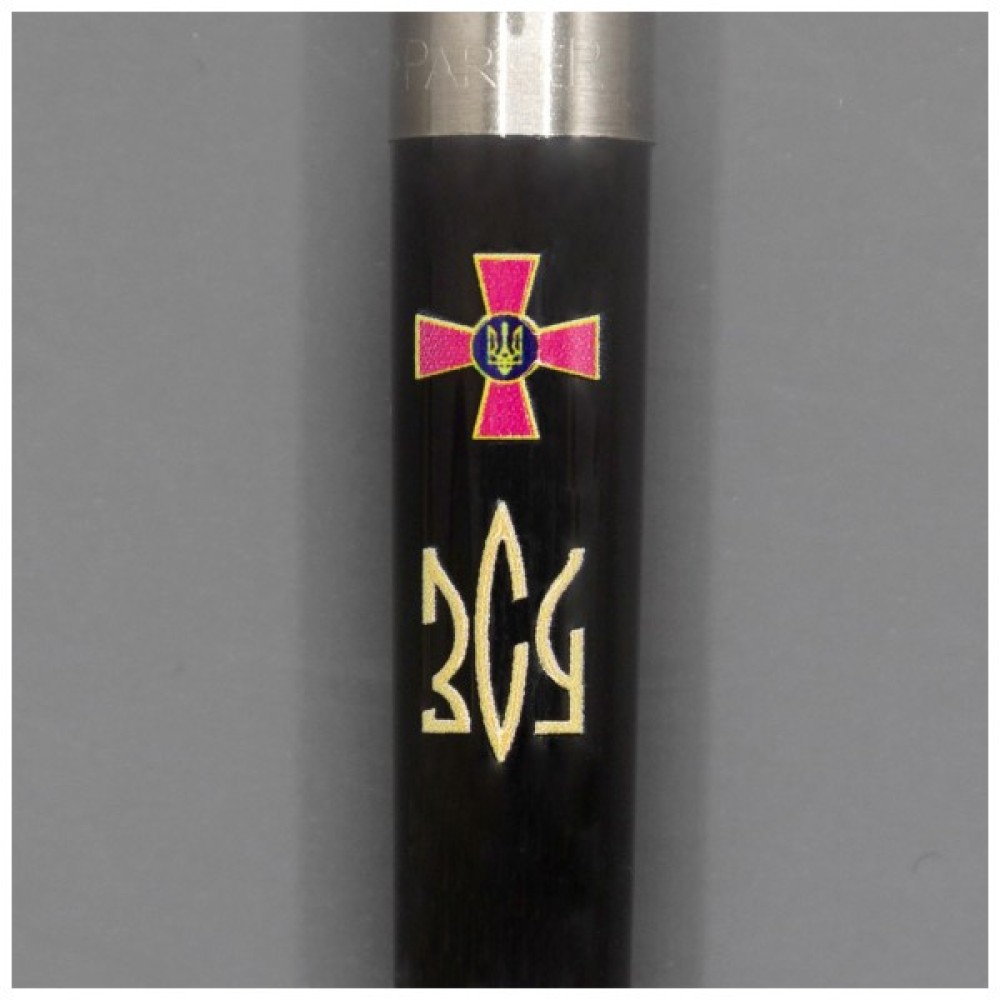 Чорна кулькова ручка Parker JOTTER ARMY Originals Black CT з кольоровим друком емблеми Збройних сил України та абревіатурою ЗСУ, стилізованою під Тризуб. Модель представлена в колекції, присвяченій доблесній Українській армії. Чудовий презент усім, хто самовіддано захищає наше майбутнє.