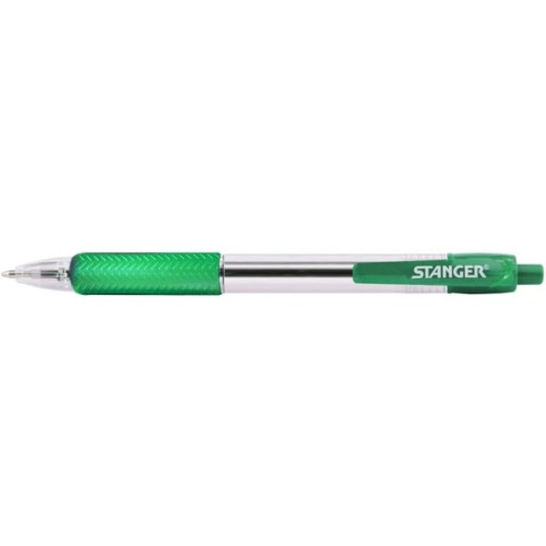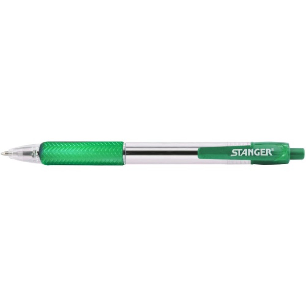 Ручка кулькова автоматична 1,0 мм, з грипом, зелена Stanger (R 1.0-18000300041). Кулькова ручка M1.0 Stanger — надійна, м'яка автоматична ручка, що акуратно пише, з міцним практичним затиском і м'яким гумовим грипом. Надійний кульковий механізм забезпечує акуратну, чітку, без розривів і плям лінію письма. Завдяки прозорому корпусу можна контролювати рівень чорнила. пише м'яко, чисто, не розмазується автоматичний кнопковий механізм із гумовим упором для пальців довжина лінії: 1200 м, колір: чорний.