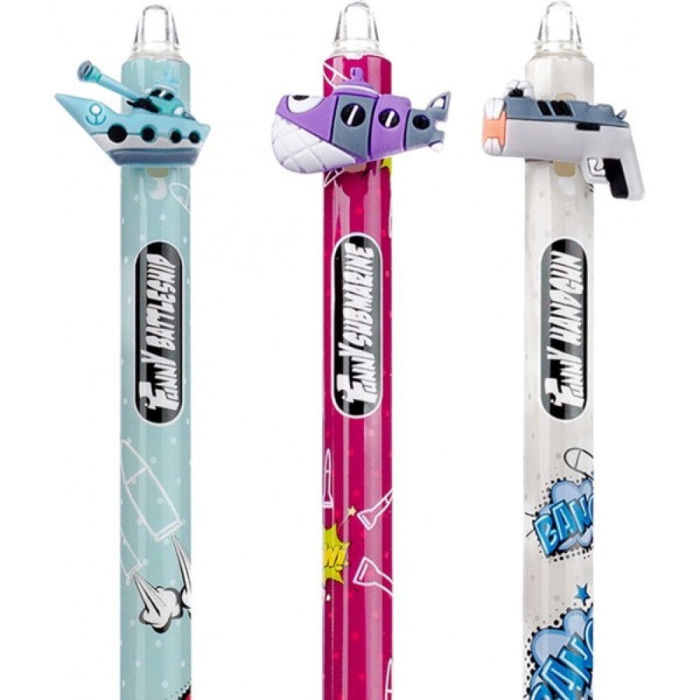 Автоматичні ручки YES з декоративними елементами спеціально розроблені для хлопчиків! Тут танчики, літаки і навіть підводні човни з термопластичної гуми! Автоматична подача стрижня виконується при переміщенні декоративного елемента. Кульковий пишучий вузол Premec (Швейцарія) забезпечує плавну, а склад чорнила на масляній основі - однорідну лінію письма. Чорнило Dokumental (Німеччина) швидко сохне, не розмазується. Колір чорнила - синій, товщина лінії письма: 0,7 мм. Пластиковий корпус. Мікс кольорів.