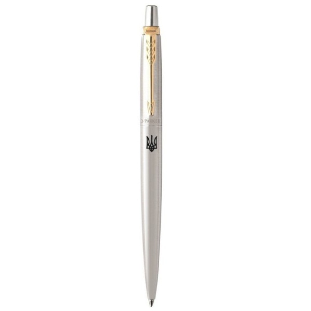 Parker JOTTER Stainless Steel GT BP_Тризуб (полірований сталевий дизайн з гравіюванням та позолотою) - ексклюзивна кулькова ручка з лінійки культових інструментів JOTTER (Джотер). Оригінальна ручка доповнена лазерним гравіюванням Герба України чорного кольору.