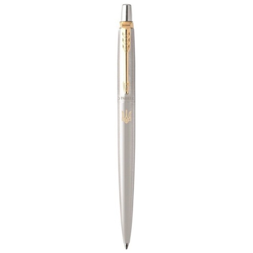 Parker JOTTER Stainless Steel GT BP - Тризуб золотий (полірований сталевий дизайн з гравіюванням та позолотою) - ексклюзивна кулькова ручка з лінійки культових інструментів JOTTER (Джотер). Оригінальна ручка доповнена лазерним гравіюванням Герба України золотого кольору.