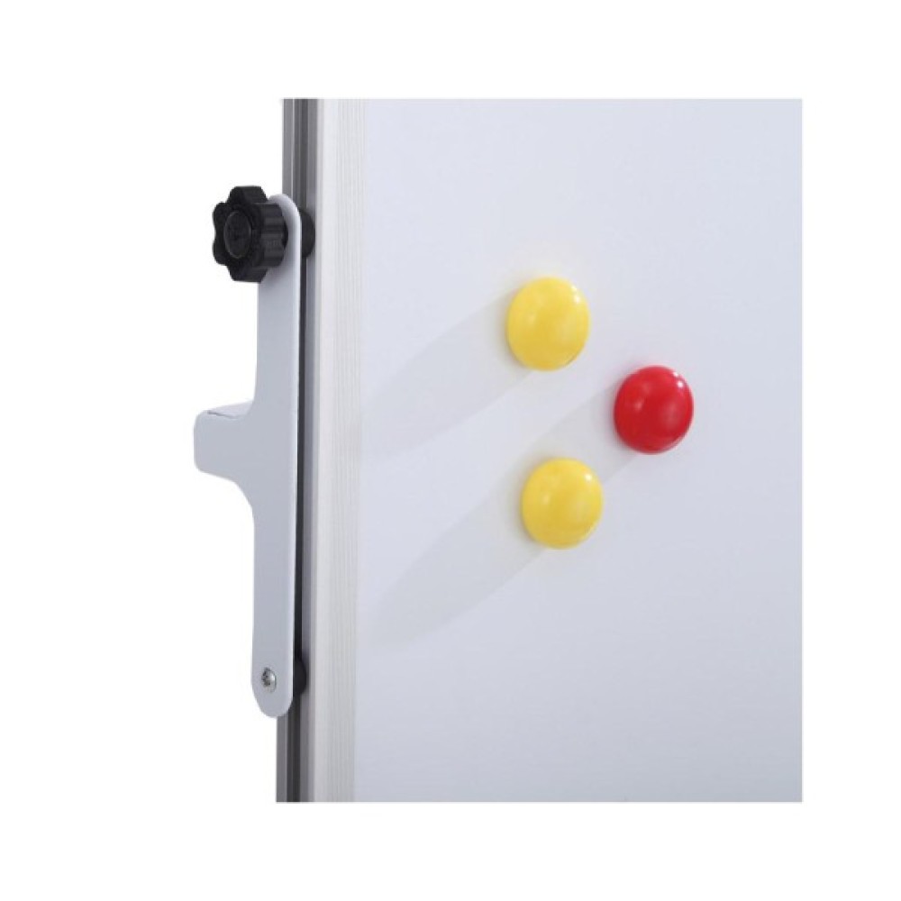 Зносостійка лакована магнітно-маркерна поверхня стійка до механічних пошкоджень. Міцна рамка з алюмінію. Фліпчарт має універсальне притискне кріплення, регульовані гачки для блокнота. Регульована висота 125-190 см. Конструкція фліпчарта легко збирається, додається інструкція.
