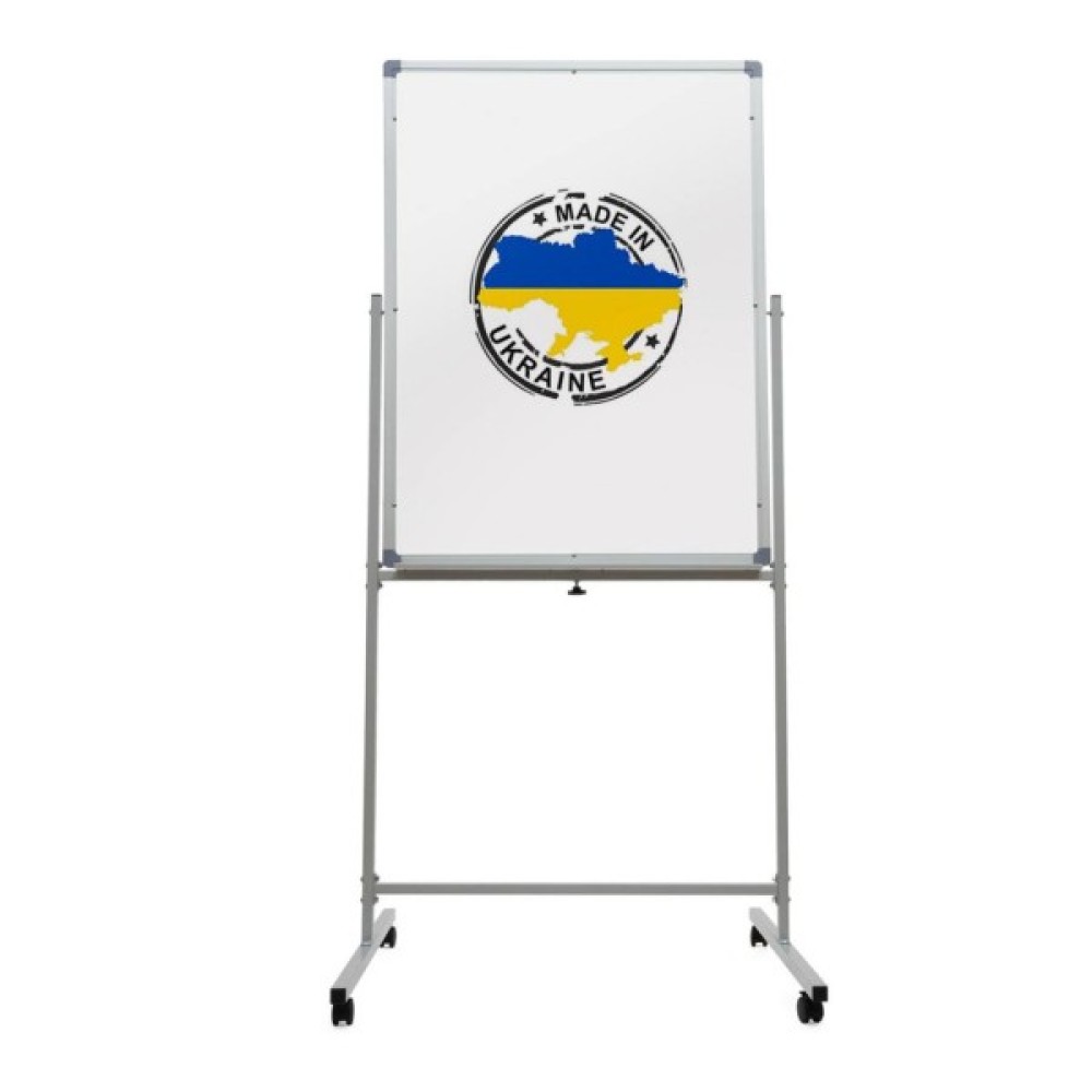 Фліпчарт крейда-маркерний, магнітний, 2 робочі поверхні — магнітно-маркерна та крейдяна. Каркас робочої поверхні виготовлений із високоякісного алюмінієвого профілю розміром 20х25 мм. Робоча поверхня виготовлена з поцинкованої сталі та має білий глянсовий колір для маркера або зелений матовий колір для крейди. Основа виготовлена з профільної металевої труби 25х25 завтовшки 2 мм і 20х20 завтовшки 1.8 мм. Фліпчарт обладнаний пластиковими коліщатками для горизонтального пересування поверхнею підлоги, кожне коліщатко з механізмом фіксації. Комплектується полицею для збирання крейди та розміщення приладдя.