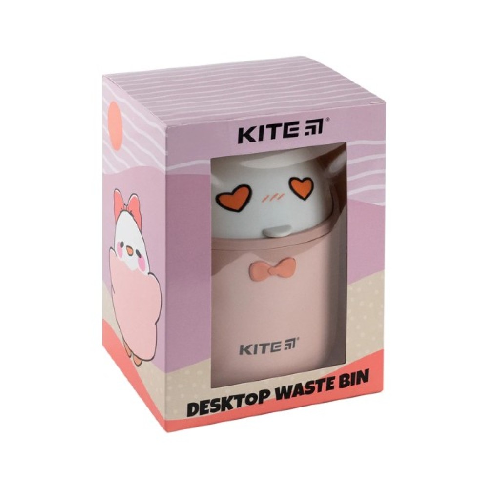 Настільний контейнер для сміття Kite – ефектний хранитель чистоти на дитячому письмовому столі. Більшість дитячих хобі – це творчі заняття, які базуються на роботі з папером, картоном, тканиною. А в процесі роботи часто залишається безліч обрізків, клаптиків та іншого дрібного сміття. Настільний контейнер у вигляді симпатичної іграшки – це вирішення проблеми зі сміттям на робочому столі для всіх любителів креативити та майструвати різноманітні вироби. Контейнер має привабливий дизайн, що прикрасить інтер'єр будь-якої дитячої кімнати. Завдяки компактному розміру він підходить для письмових або комп'ютерних столів, а також – туалетних столиків та комодів. Кришка широко відкривається і легко закривається, надійно утримуючи сміття усередині. З цим контейнером дитина створюватиме аплікації, вирізатиме сніжинки та точитиме олівці із задоволенням. А на столі завжди буде чисто та охайно!