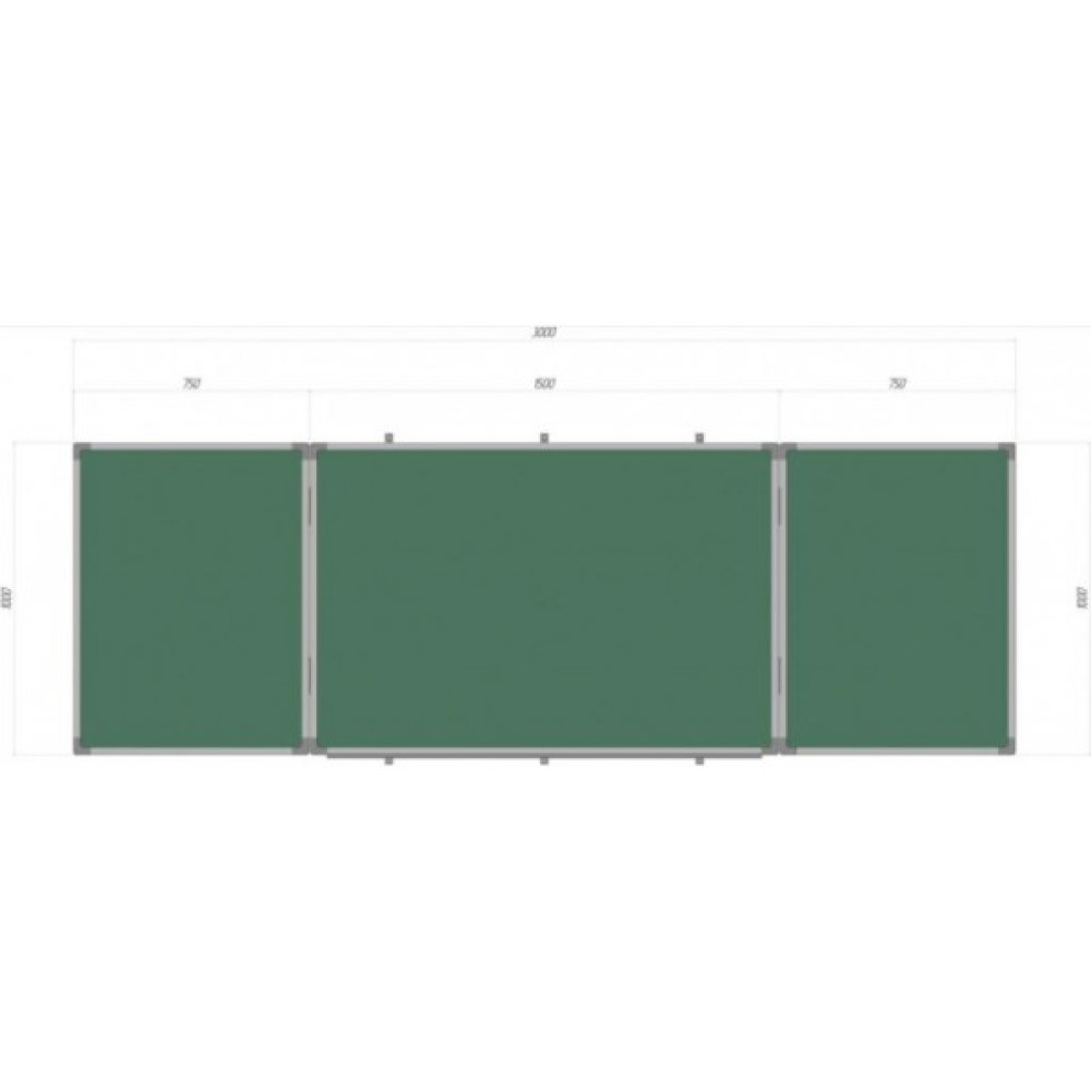 Шкільна дошка магнітно-крейдяна має 5 робочих поверхонь. Каркас дошки виготовлений з алюмінієвого профілю, розміром 20х25 мм. Робоча поверхня виготовлена з оцинкованої сталі та має зелений матовий колір для крейди.