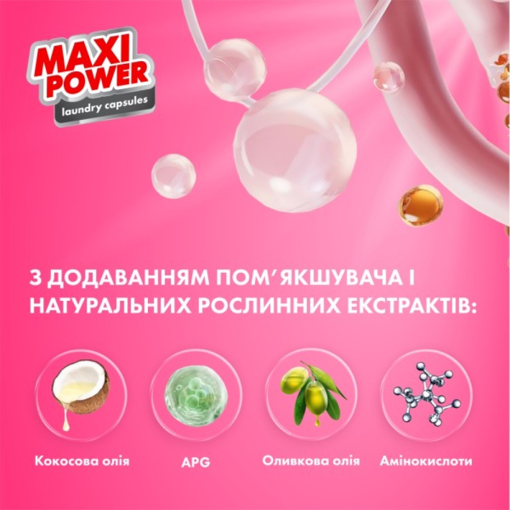 Капсули Maxi Power Flower Wind — це сучасне рішення для бездоганної чистоти вашого одягу, що поєднує ефективність, ніжний догляд за тканинами та чарівний квітковий аромат. Завдяки своїй концентрованій формулі, ці капсули чудово впораються зі стійкими плямами, забезпечуючи вашим речам свіжість і чистоту після кожного прання.