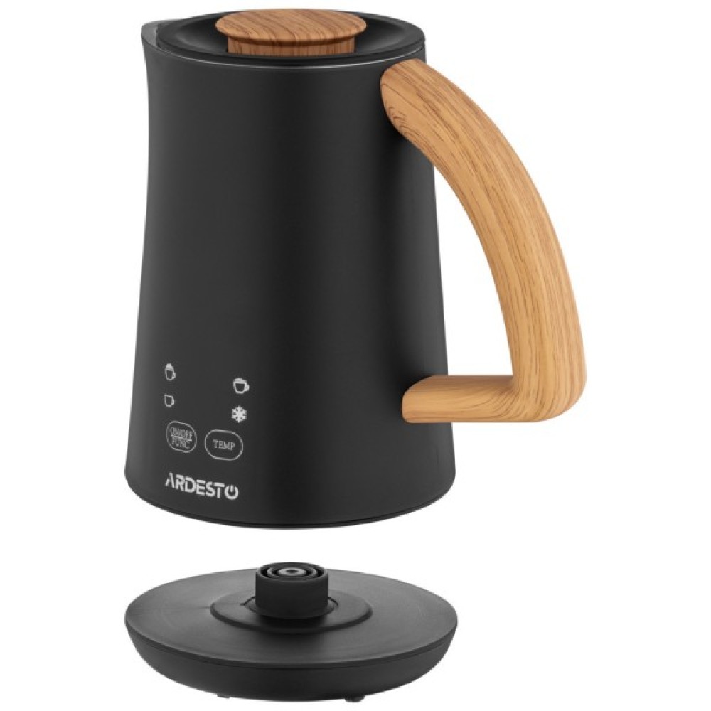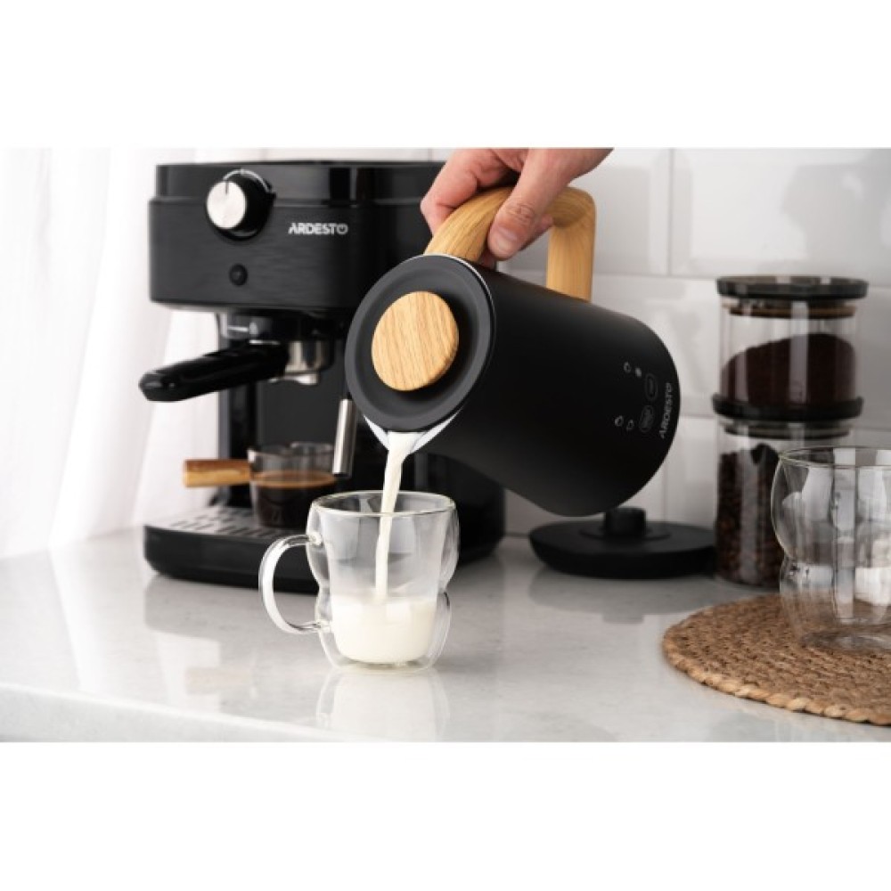 Спінювач молока ARDESTO MBC-Y500B – це компактний та ефективний пристрій для приготування стійкої молочної піни для улюблених напоїв. Вироблена з якісного пластику чорного кольору, модель не тільки вдало пасуватиме чи не до будь-якого інтер’єру кухні, але й слугуватиме впродовж тривалого часу. Спінювач вирізняється високою потужністю (500 Вт) – можливість збивати бездоганну піну за лічені хвилини. Чотири режими: тепле молоко з густою щільною пінкою; тепле молоко зі звичайною пінкою; підігрівання молока (або іншої рідини, навіть вина для глінтвейну) з регулюванням температури 45/60/70/80 °C; спінювання без підігрівання