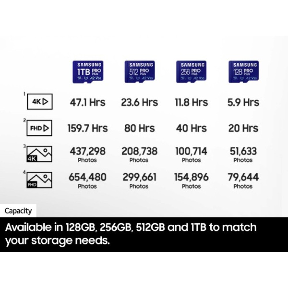 Samsung PRO Plus забезпечує шестиступеневий захист: від води, температури, рентгенівських променів, магнітів, ударів і зношування, охороняючи ваші спогади. Насолоджуйтесь впевненістю разом із 10-річною обмеженою гарантією. Виберіть світового лідера у виробництві карт пам'яті, який із 2003 року підтримує стандарти якості, завдяки самостійному виробництву всіх компонентів. З Samsung кожна мить стає цінною.