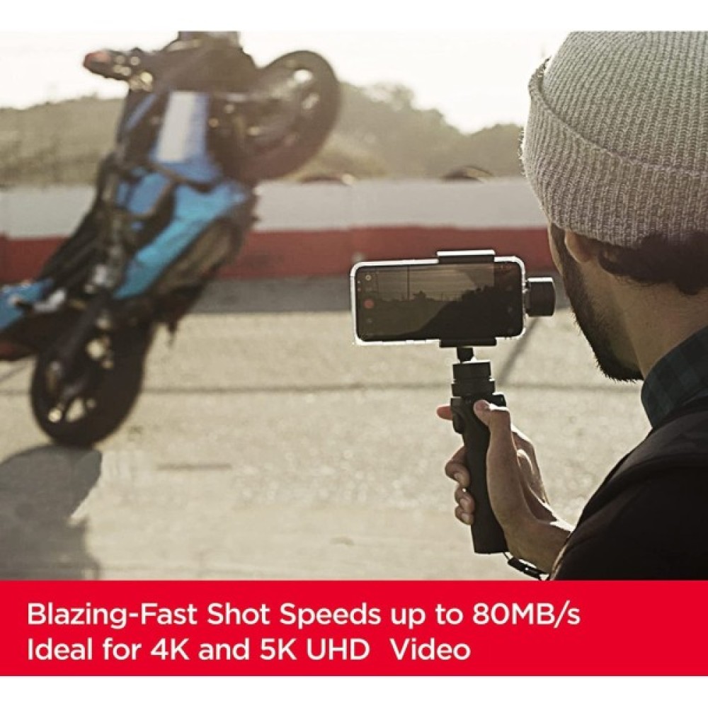 Карта пам'яті характеризується швидкістю читання до 190 МБ/с та швидкістю запису до 90 МБ/с, що робить її відмінним вибором для безперервної зйомки відео у форматі 4K UHD, а також для швидкої передачі великого обсягу даних. Це забезпечує плавний потік даних та відсутність затримок, що особливо важливо для професійних фотографів і відеографів.