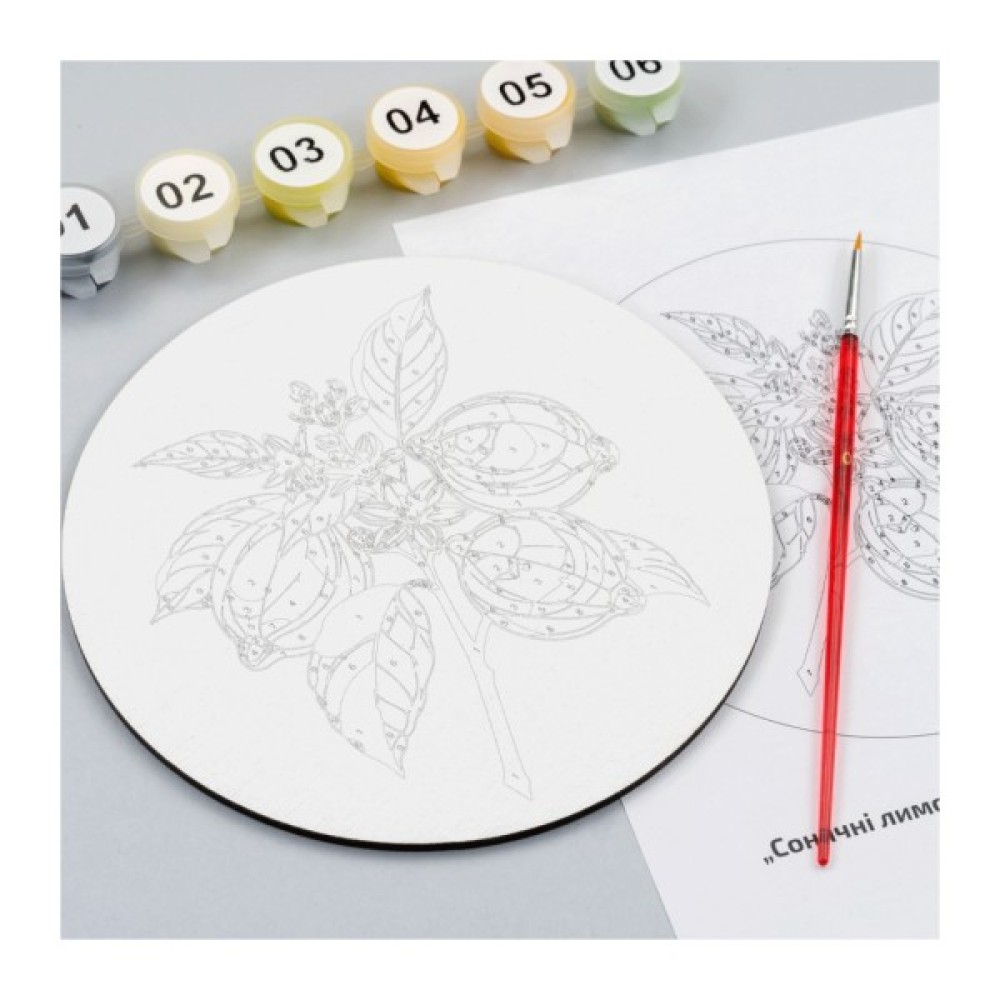 Сонячні лимони", кругла, 15 см, з мольбертом