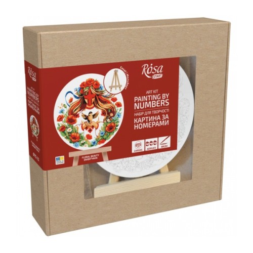 Стати справжнім художником легко завдяки наборам для творчості ROSA START!Процес створення картини надзвичайно захоплюючий і легкий водночас, адже малювати потрібно за пронумерованою схемою. Контури картини нанесені на полотно, області поділені на окремі сегменти з номерами, яким відповідає номер на баночці з фарбою. Поступово зафарбовуючи їх, Ви отримуєте готову картину!Разом із картинами за номерами ROSA START кожен, незалежно від віку, зможе самостійно писати картини та поступово розкрити в собі талант художника. Саме тому, перше, на що варто звернути увагу при виборі картини за номерами - це рівень складності. Картини за номерами ROSA START мають три рівні складності, визначити які можна за допомогою відповідної позначки на етикетці та кольору самої етикетки:1. Жовтий та зелений колір відповідає I-му рівню складності – така картина складається з крупних елементів та не містить дрібних деталей, а тому підходить для новачків і тих, хто лише знайомиться з живописом. 2. Синій колір відповідає II-му рівню складності – в даних картинах поряд із крупними з’являються середні та невелика к-ть дрібних елементів. 3. Червоний колір відповідає III-му рівню складності – така картина містить велику к-ть дрібних деталей, підійде для тих, хто вже має певні навики в даній техніці.Склад набору:- полотно на підрамнику 15х15 / 15х20 см з контуром і нумерацією;- якісні синтетичні пензлі;- схема картини;- набір акрилових фарб;- мольберт настільний А6;