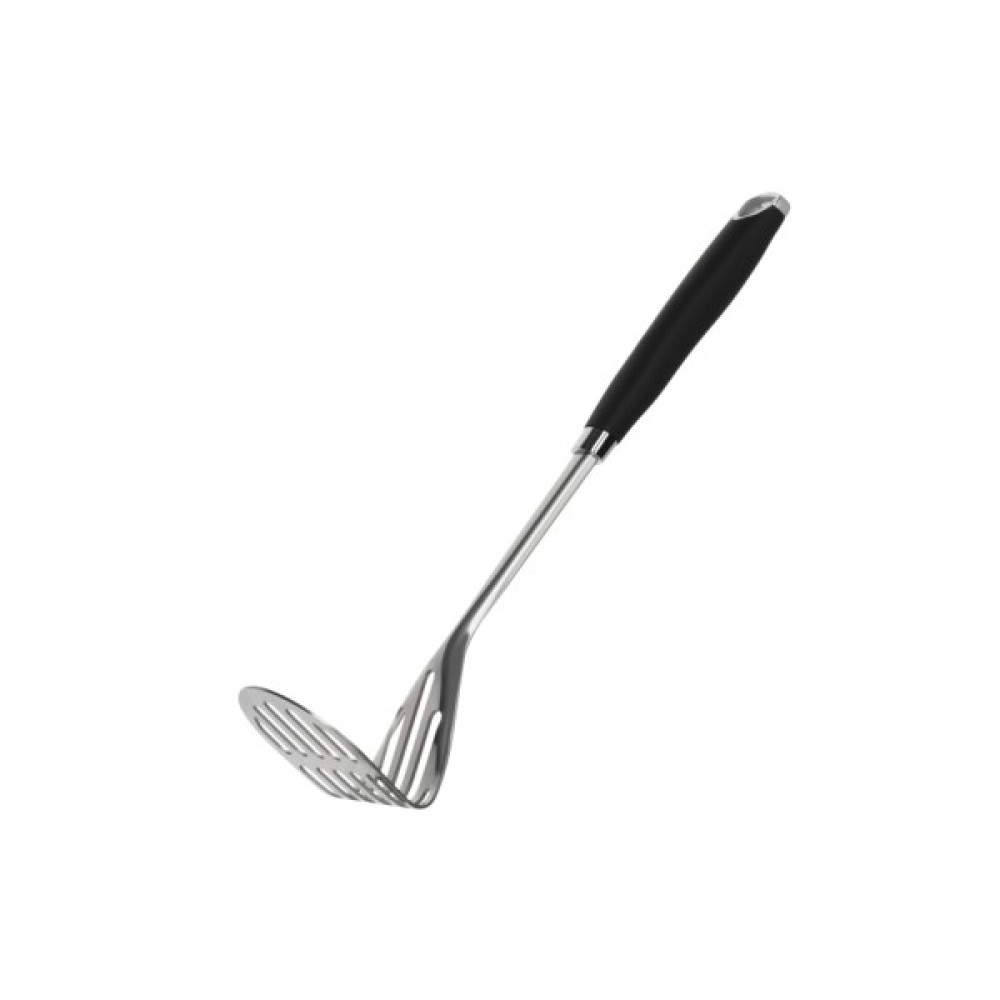Стильна картоплем’ялка з нержавіючої сталі завдовжки 30,8 см. Ергономічна форма дає змогу зменшити навантаження на руки під час роботи. Оснащена зручним пластиковим руків’ям, що не нагрівається і є приємним на дотик. Не рекомендовано мити в посудомийній машині.