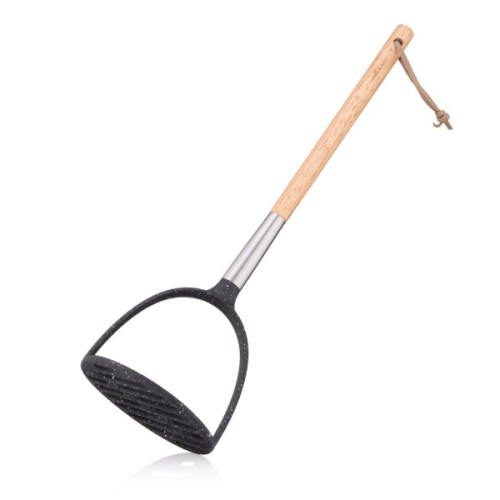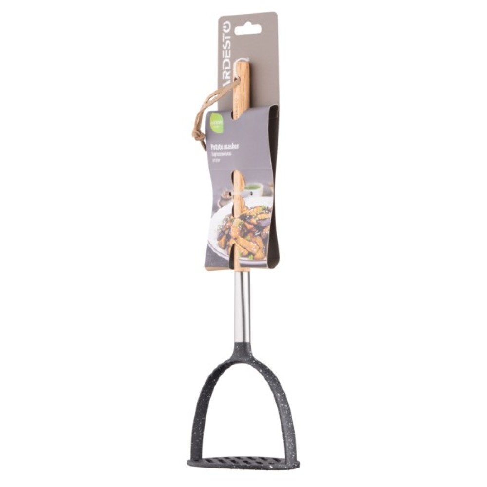 Картоплем’ялка ARDESTO Midori стане в пригоді під час приготування страв. Виготовлена з нейлону чорного кольору – матеріалу, який витримує високу температуру і безпечний для тефлонового покриття. Зручне руків’я з дерева з елементом із нержавіючої сталі. Розмір приладдя 33 × 10 см. Виріб не призначений для миття в посудомийній машині.