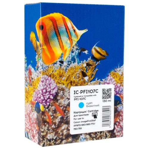 Картридж сумісний Canon PFI-107C (6706B001) 130 мл, блакитний Barva (IC-PFI107C) підходить для друку:
