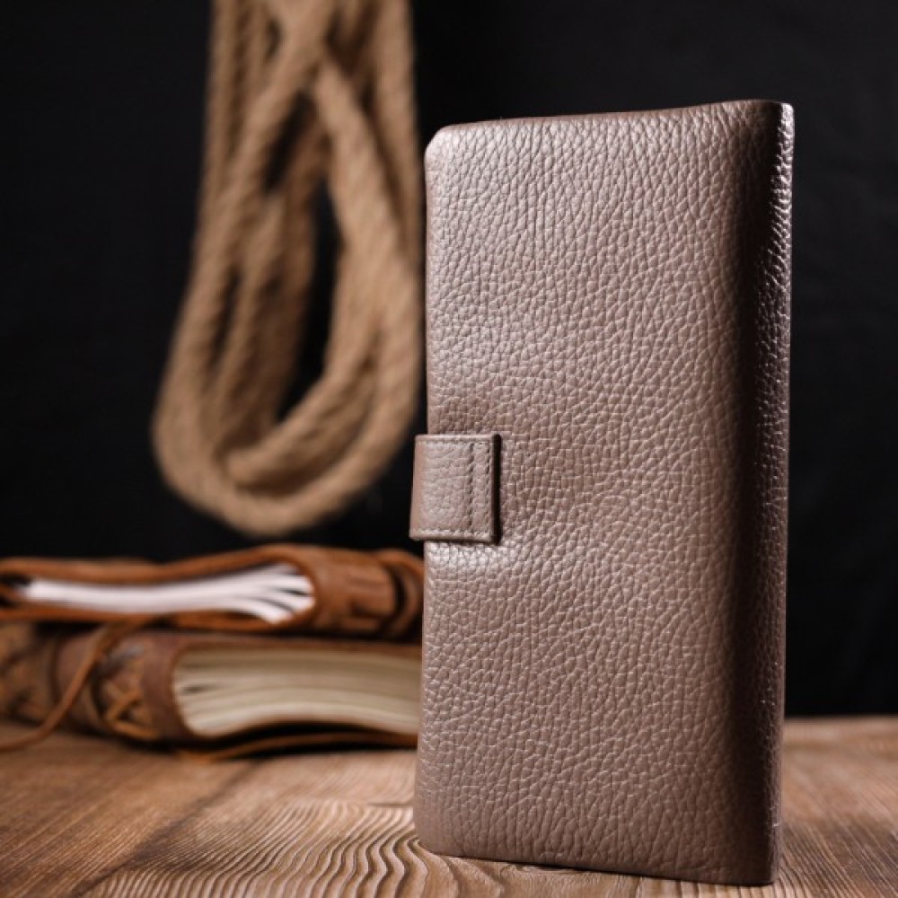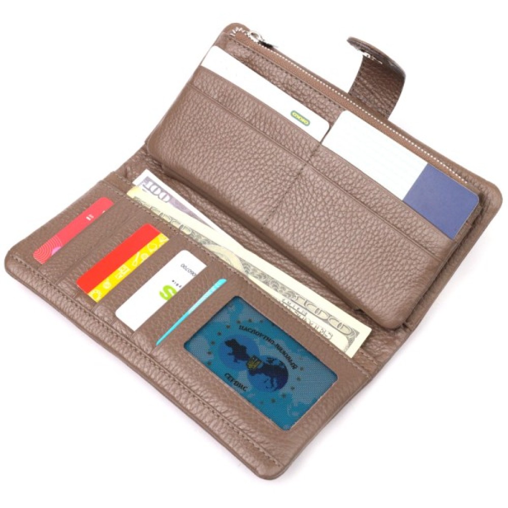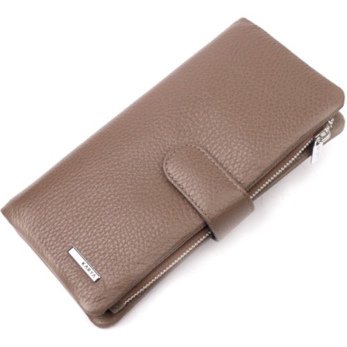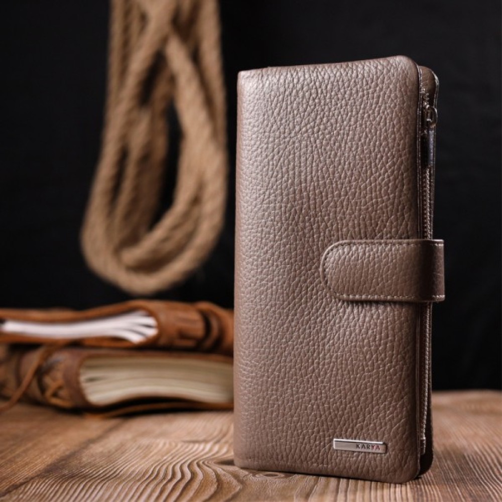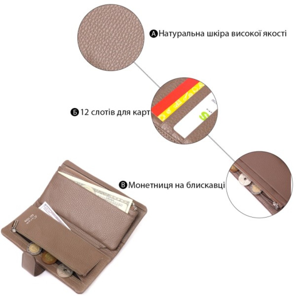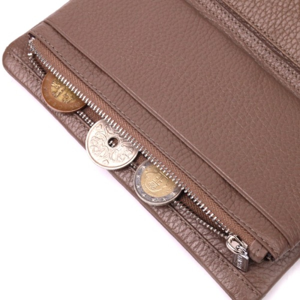 Стильний гаманець з натуральної зернистої шкіри, у бежевому кольорі.