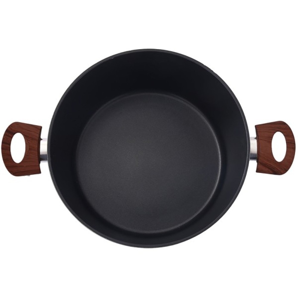 - Ручка з термостійкого бакеліту, що не нагрівається, декорована під дерево та з приємним на дотик покриттям Soft touch