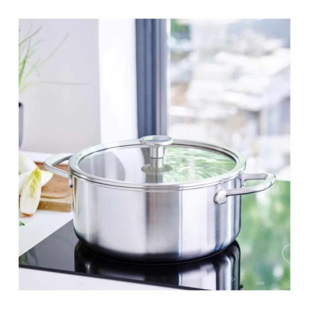 Багатошарова нержавіюча сталь потужна та витончена з красивою матовою поверхнею. Алюмінієва серцевина забезпечує рівномірний розподіл тепла. Цей посуд прослужить вам все життя.