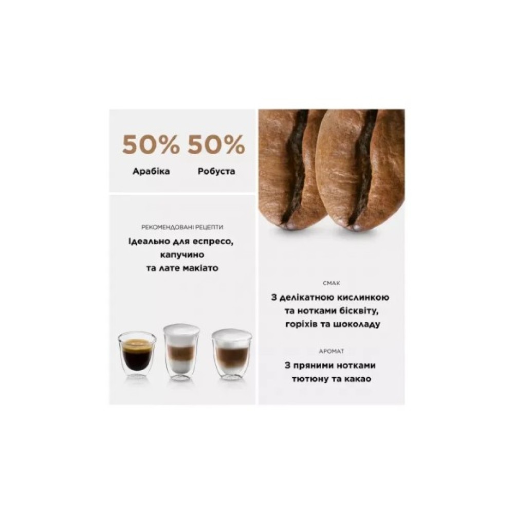 Вибирайте будь-який рецепт. Кавові композиції від найпопулярніших, до рідкісних та оригінальних вийдуть просто чудовими. Збереження та якість сировини гарантує герметична фірмова упаковка – аромат у момент відкриття пачки просто приголомшливий.