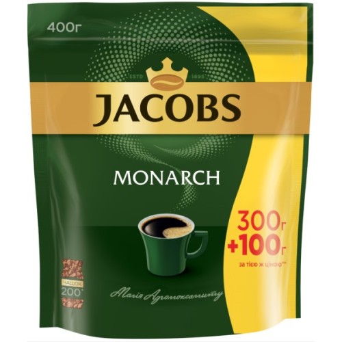 Jacobs Monarch — це високоякісна розчинна кава, яка виготовлена за технологією сухого заморожування, що дозволяє максимально зберегти смак та аромат кавових зерен у кожній гранулі. Незрівнянний аромоксамит розчинної кави Jacobs Monarch з кожною чашкою дарує багатство аромату та насичений смак натуральної кави.