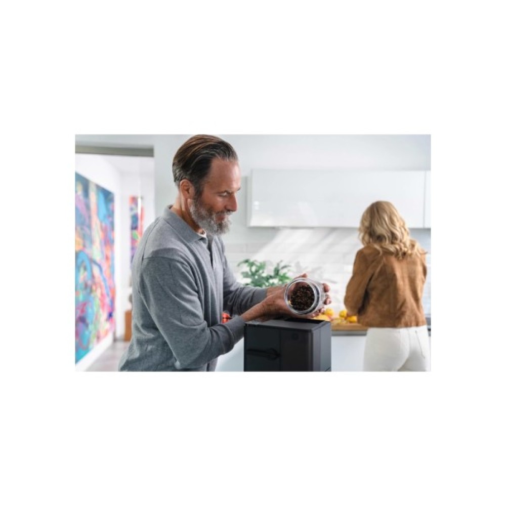NIVONA CUBE 4106 оснащена контейнером, що вміщує до 250 грамів зерен та компактним резервуаром для води об’ємом 1,4 літра.