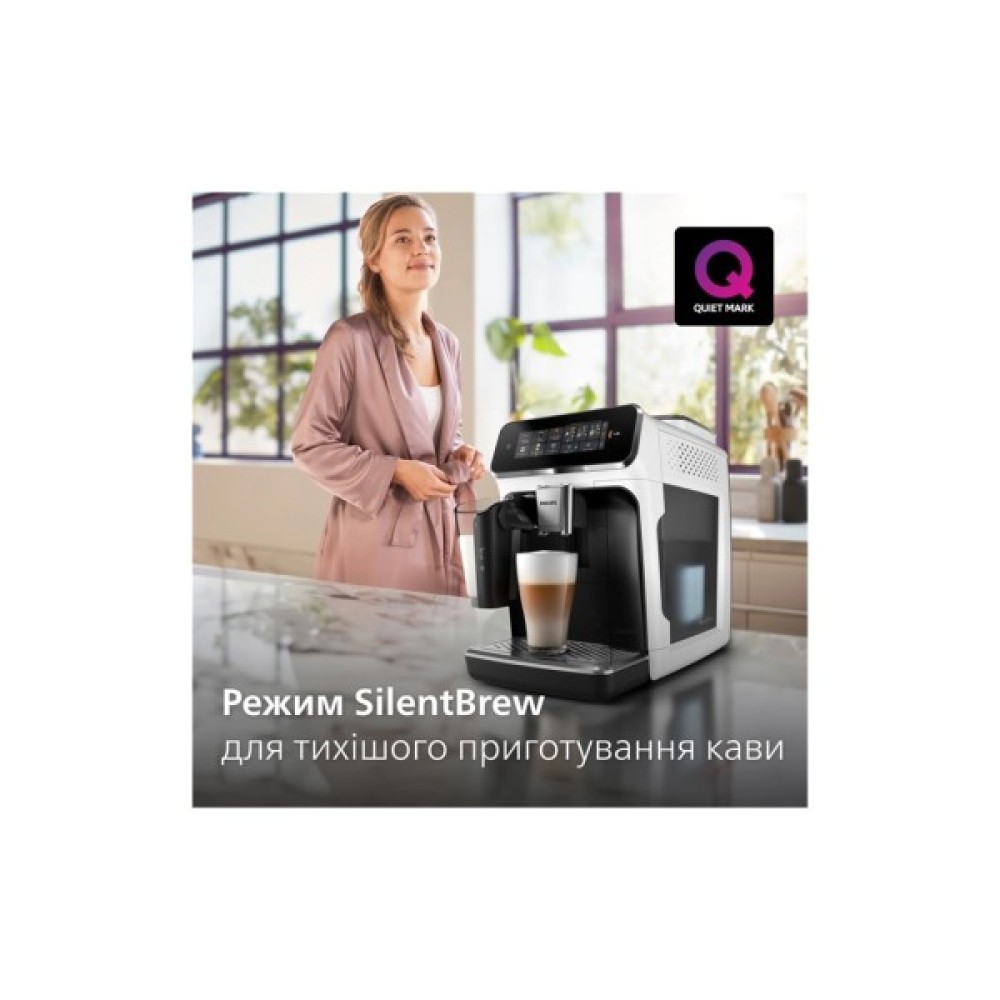 Безшумне приготування ароматної кави завдяки провідній в галузі технології SilentBrew, яка забезпечує звукоізоляцію та безшумний помел для створення приємних вражень від приготування кави. Сертифіковано Quiet Mark.