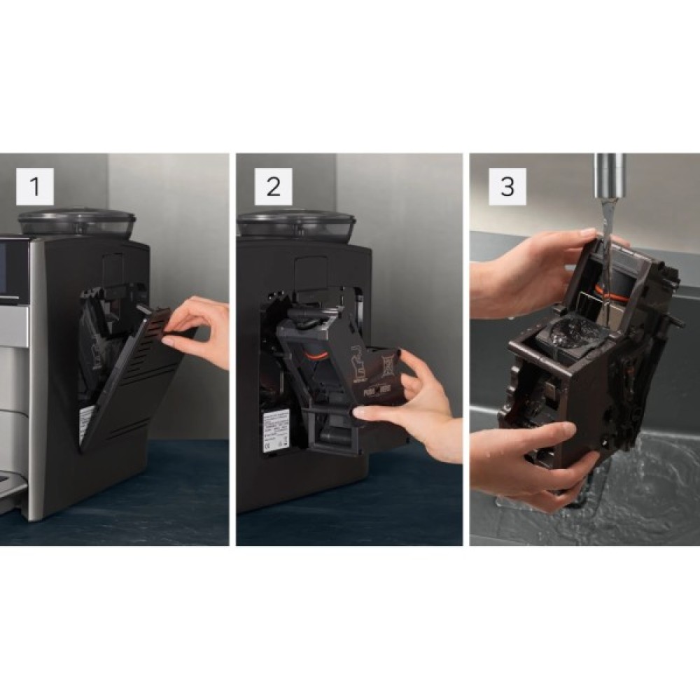 Кавомашина також має автоматичні програми очищення: autoMilk Clean (очищення парою після кожного використання), calc’nClean (видалення накипу та очищення).