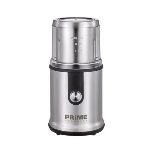 Кавомолка потужністю 300 Вт оснащена ножовим механізмом подрібнення та металевим корпусом у кольорі нержавіючої сталі. Об'єм бункера становить 110 г. Пристрій має знімну чашу та додаткову чашу для зручності використання, а також відсік для зберігання шнура.