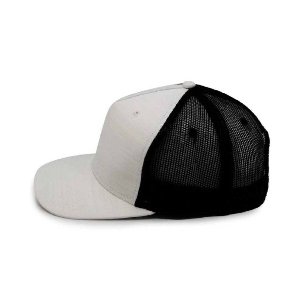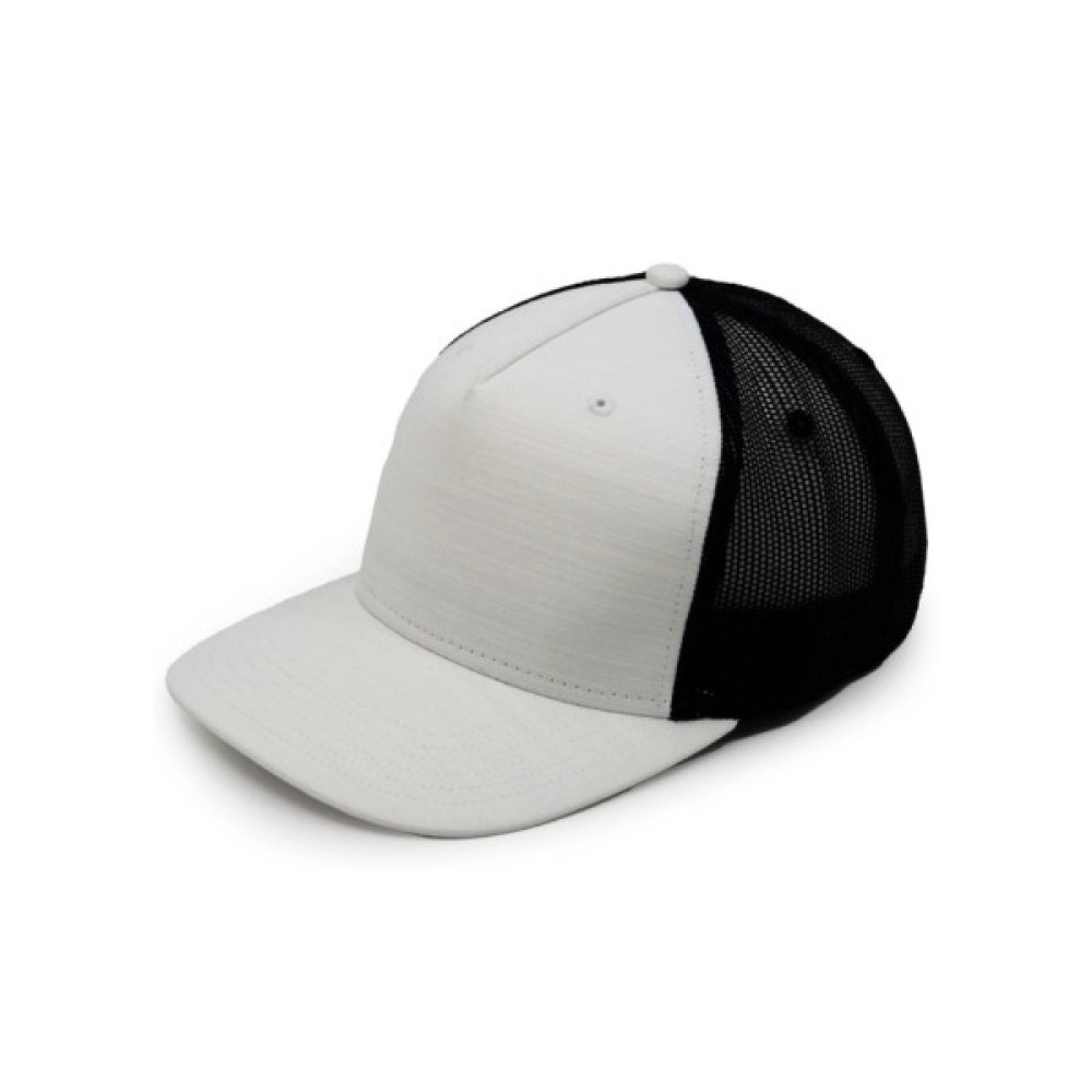 Кепка має п’ять клинів з люверсами, які оздоблені вишивкою. Структурована широка передня панель виготовлена з щільної тканини. Бокові та задні панелі виконані з сітчастого матеріалу (mesh), що забезпечує повітропроникність і вентиляцію.