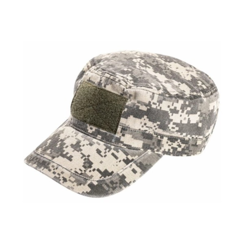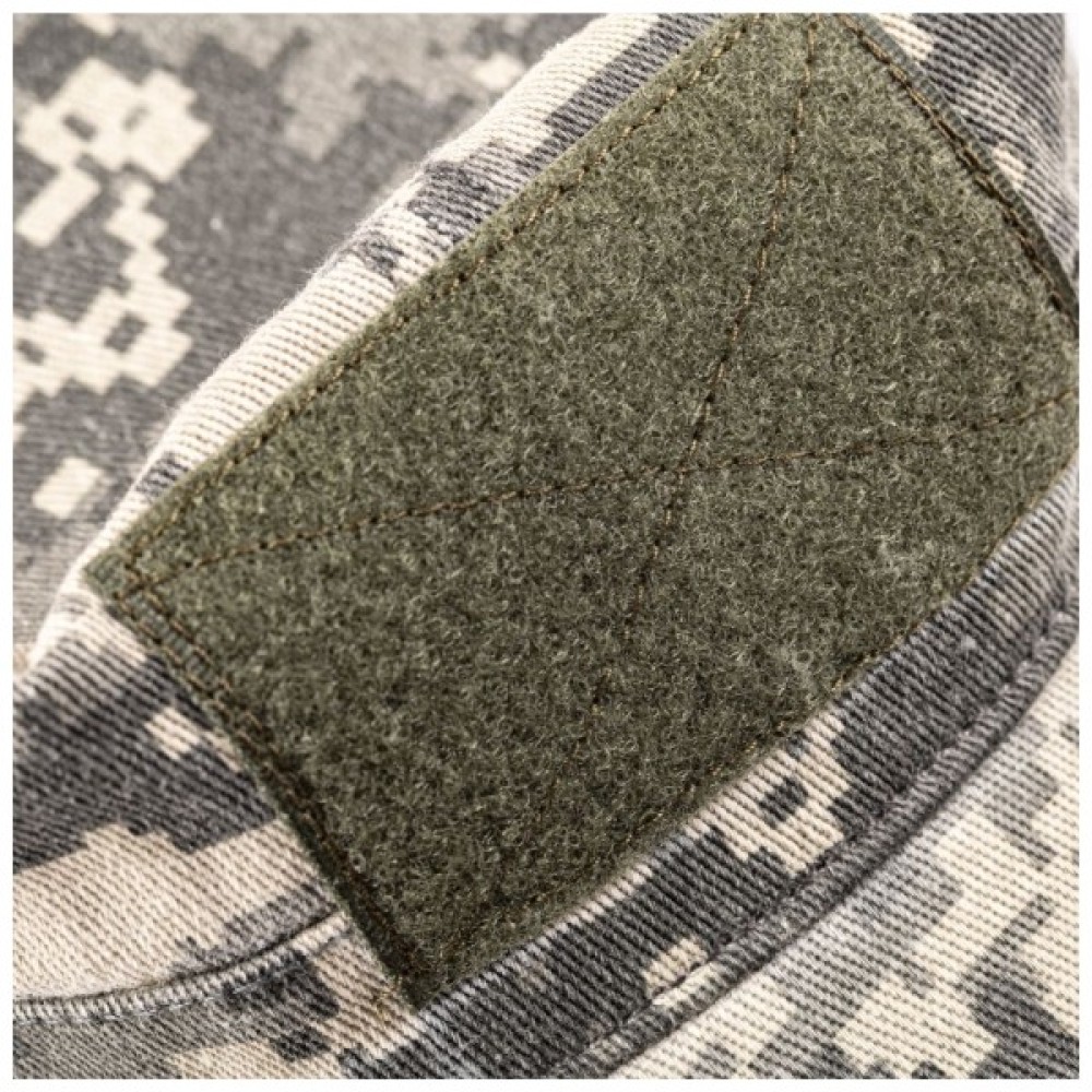 Кепка MILITARY з липучкою велкро 50 х 80 мм на передній панелі кольору піксельний камуфляж, яка зроблена з бавовни і застібається на липучку.