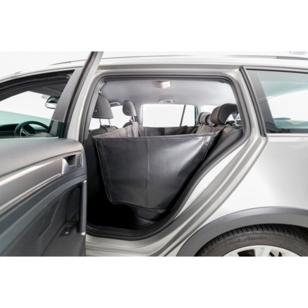Килимок захисний в авто представлений відомим німецьким виробником зоотоварів Trixie, застосовується для захисту автомобільних сидінь, на яких перевозиться собака, від пошкоджень, забруднень та залишків шерсті. Для виготовлення використовується високоякісний нейлон, що не містить у складі шкідливих речовин та є абсолютно безпечним для здоров’я тварин, має стильний дизайн, характеризується практичністю, довговічністю, міцністю. Наявність спеціальних кріплень дозволяє зручно та надійно надіти килимок на заднє сидіння та підголовники. Призначається для собак великих порід.