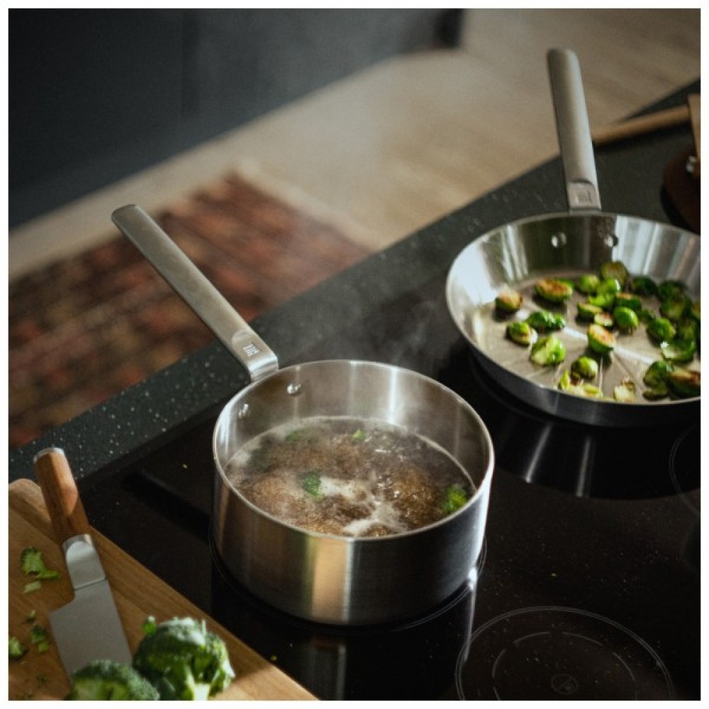 Алюмінієвий сердечник між зовнішнім та внутрішнім шарами з нержавіючої сталі гарантує рівномірне та ефективне нагрівання на всіх типах печей. Посуд Norden підходить навіть для делікатних інгредієнтів і розкриває повний смак вашої страви. Кришка та ручка з нержавіючої сталі мінімізують передачу тепла для більш комфортного використання. Максимальна температура смаження та запікання 270°С.