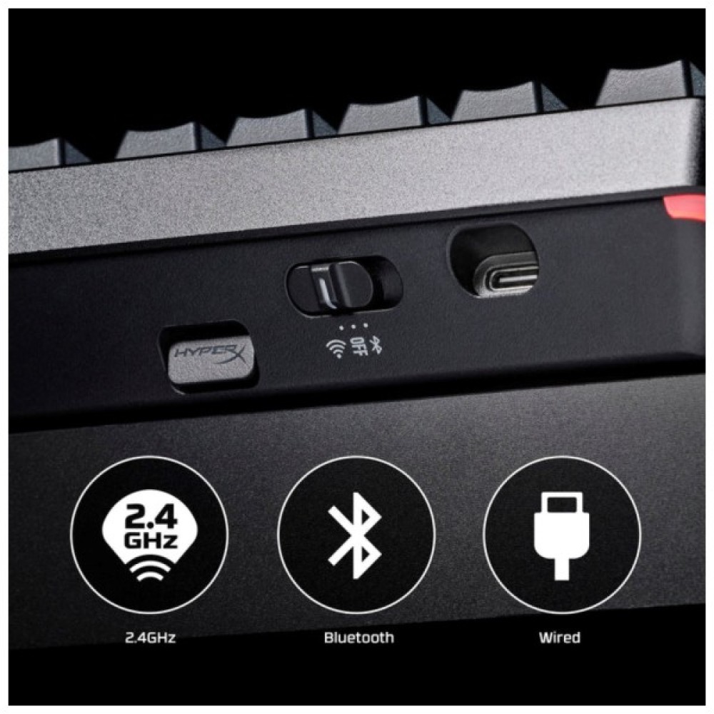 Унікальна функціональність HyperX Alloy Rise 75 полягає у її здатності підключатися як дротово, так і бездротово через USB, Bluetooth або адаптер 2,4 ГГц. Ця гнучкість дозволяє швидко перемикатися між різними пристроями, забезпечуючи оптимальну продуктивність у будь-якій ситуації. Автономність до 80 годин з підсвіткою та до 1500 годин без неї робить цю клавіатуру ідеальним вибором для тривалих ігрових сесій.