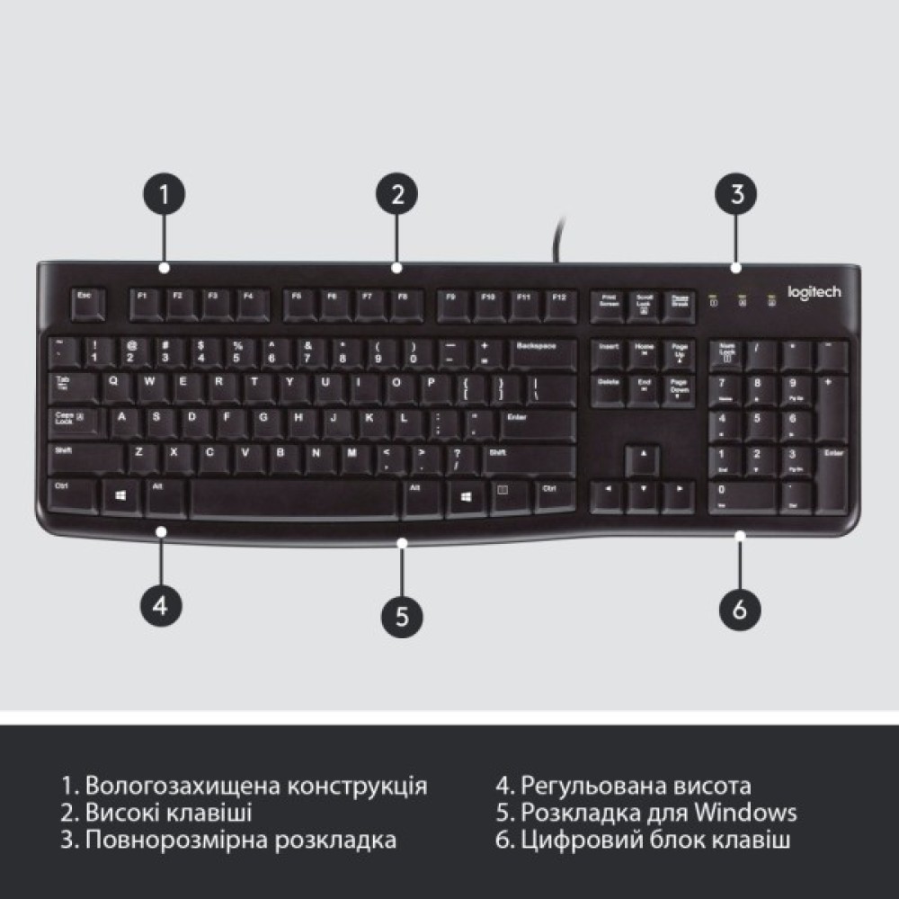 Обираючи Logitech K120 Ukr, ви обираєте безкомпромісну якість від світового лідера у виробництві клавіатур і мишей. Ця клавіатура - втілення надійності та функціональності, що відповідає найвищим стандартам, дозволяючи вам зосередитися на важливих завданнях без зайвих турбот. Купівля Logitech K120 - це інвестиція в якість, яка прослужить вам довго.
