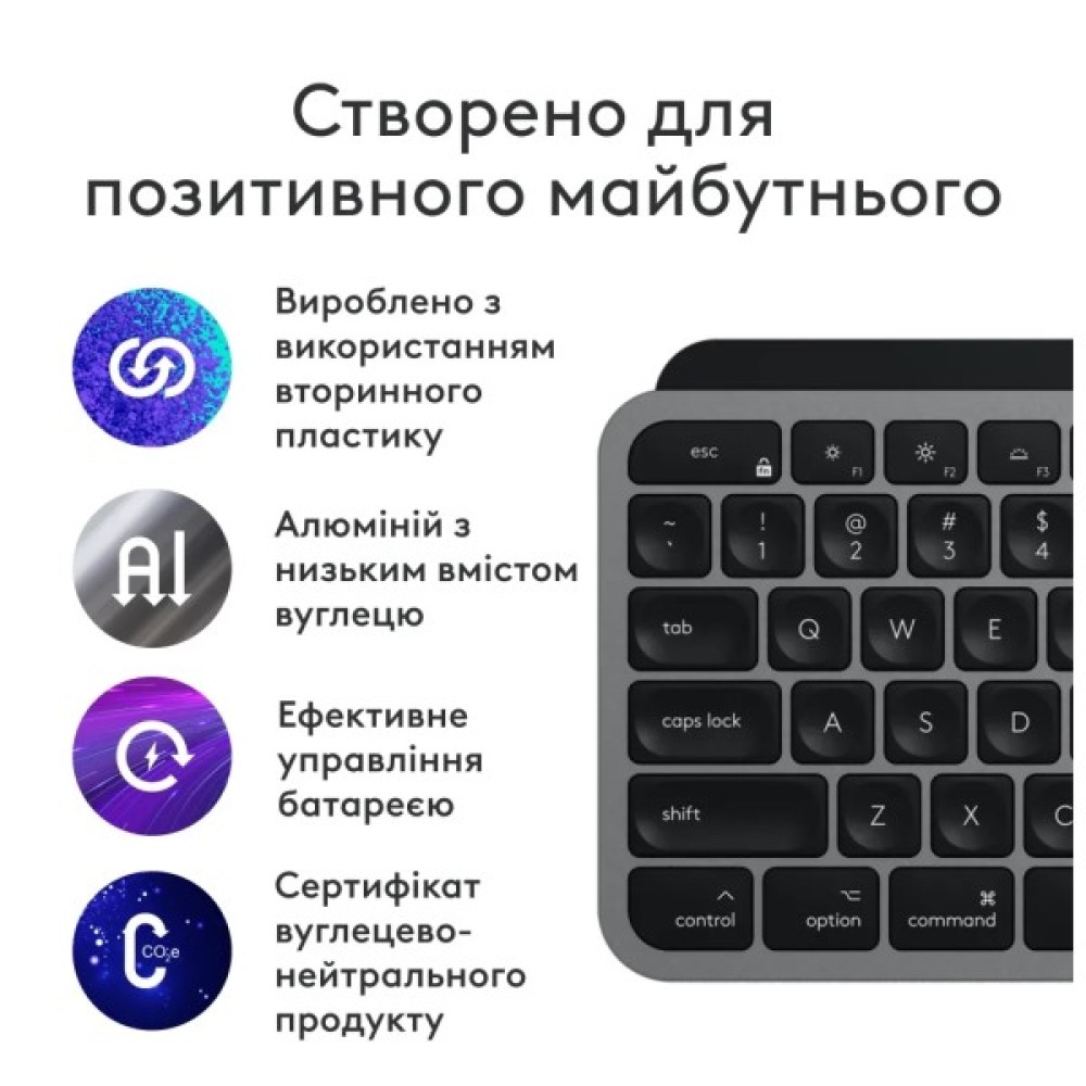 Клавіатура, Logitech, MX, Keys, S, MAC, BluetoothWireless, UA, Space, Grey, 920011637