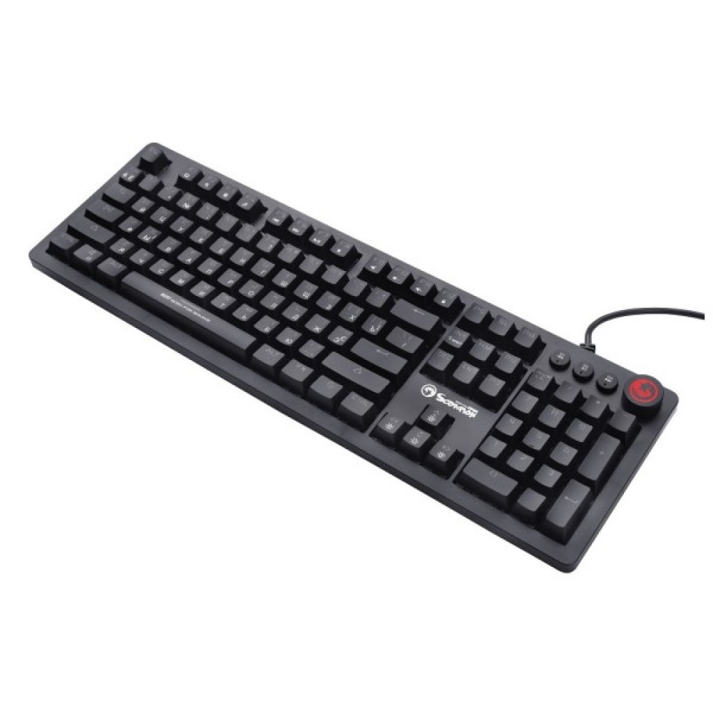 Клавіатура Marvo KG917 Multi-LED Mechanical Blue Switch є втіленням інноваційного дизайну для справжніх цінителів ігрового обладнання. Ця ігрова механічна клавіатура, розроблена з акцентом на максимальну продуктивність та комфорт, стане справжнім союзником у будь-якій ігровій битві.