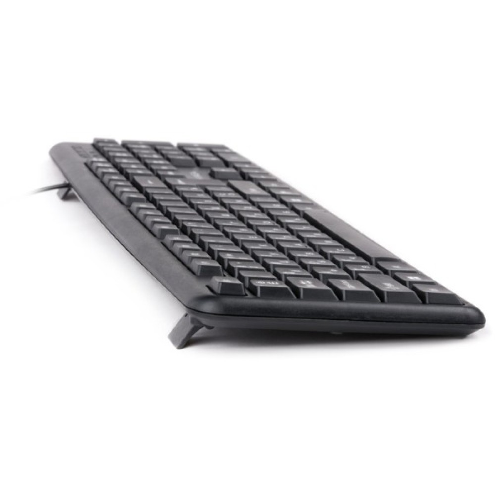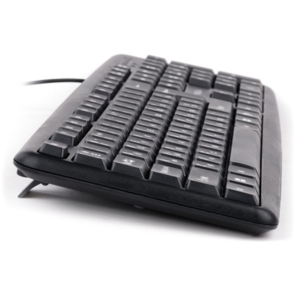 Лаконічний чорний корпус виготовлений із зносостійкого пластику, що запобігає появі подряпин та зберігає охайний вигляд впродовж тривалої експлуатації. Завдяки вологостійкості, клавіатура може витримати випадкове потрапляння рідини, що робить її більш надійною в повсякденному використанні. Однак, для безпеки рекомендується одразу відключити пристрій від ПК і дати йому просохнути при потраплянні рідини.