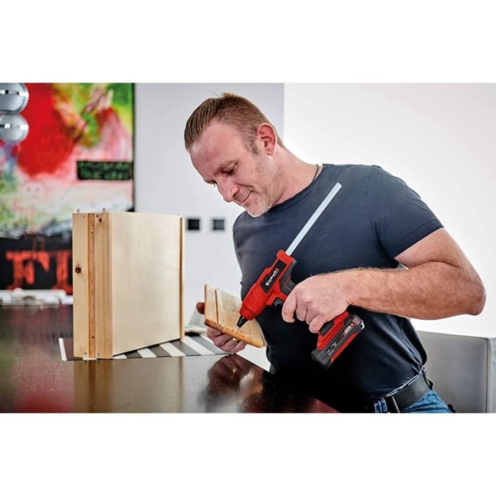 Пістолет клейовий акумуляторний Einhell TE-CG 18 Li - Solo це бездротовий термопістолет з лінійки інструментів Power X-Change system для склеювання гарячим клеєм. За допомогою пістолета гарячого склеювання можна склеювати наступні матеріали: дерево, пластмасу, текстиль, картон, кераміку, шкіру і т.і.