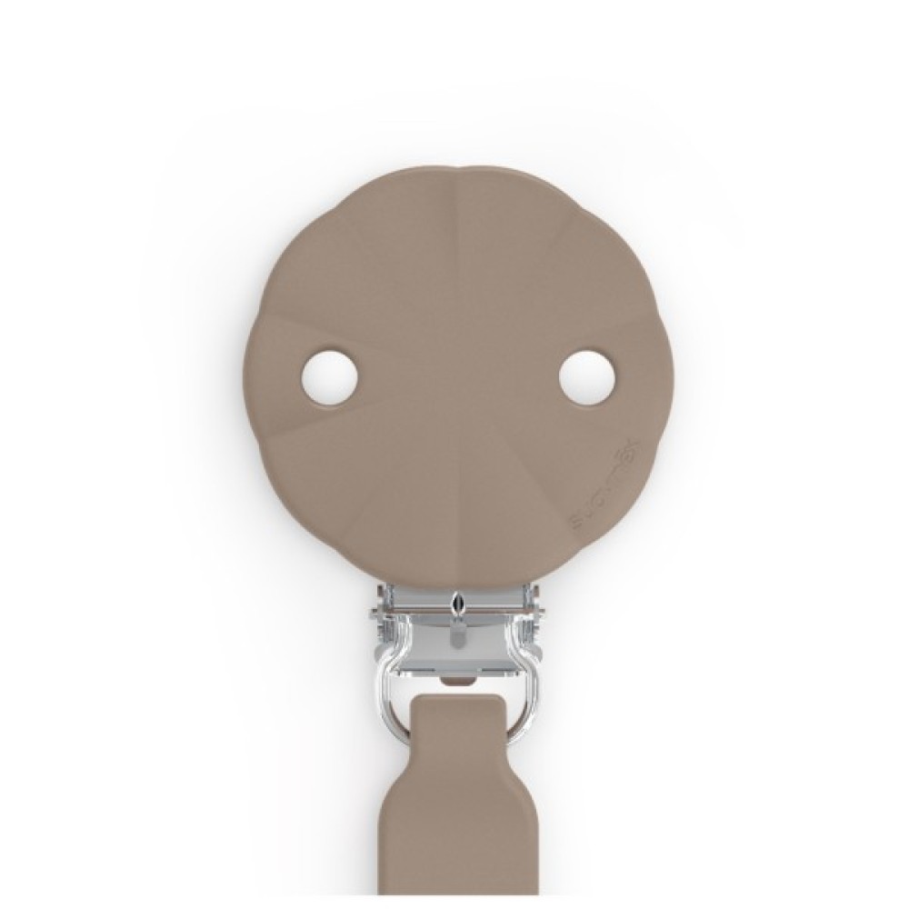 Кліпса виготовлена із безпечного медичного силікону. Вона легко кріпиться до одягу дитини, не дає пустушці впасти на брудну поверхню або загубитися.