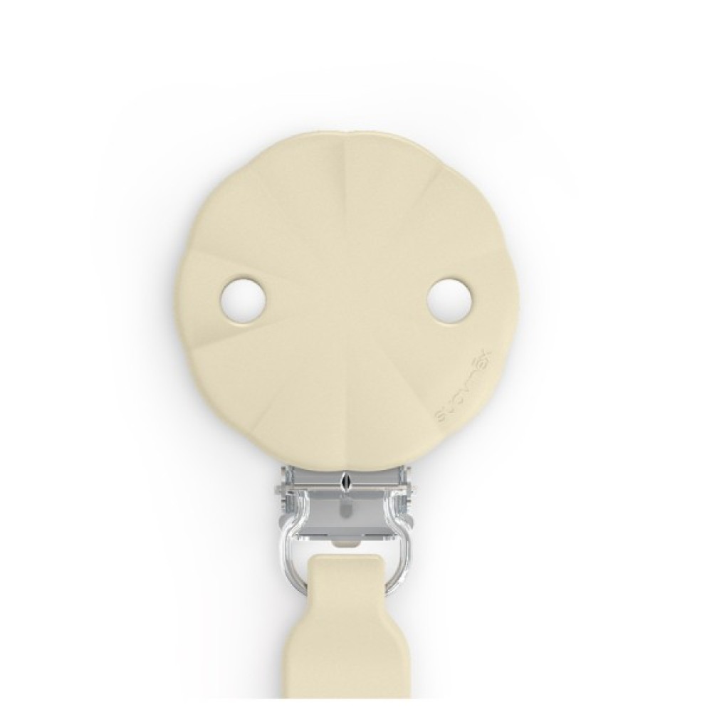 Кліпса виготовлена із безпечного медичного силікону. Вона легко кріпиться до одягу дитини, не дає пустушці впасти на брудну поверхню або загубитися.