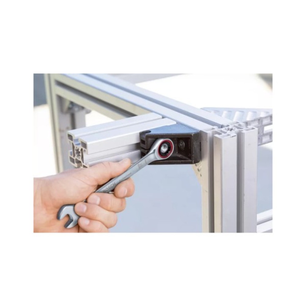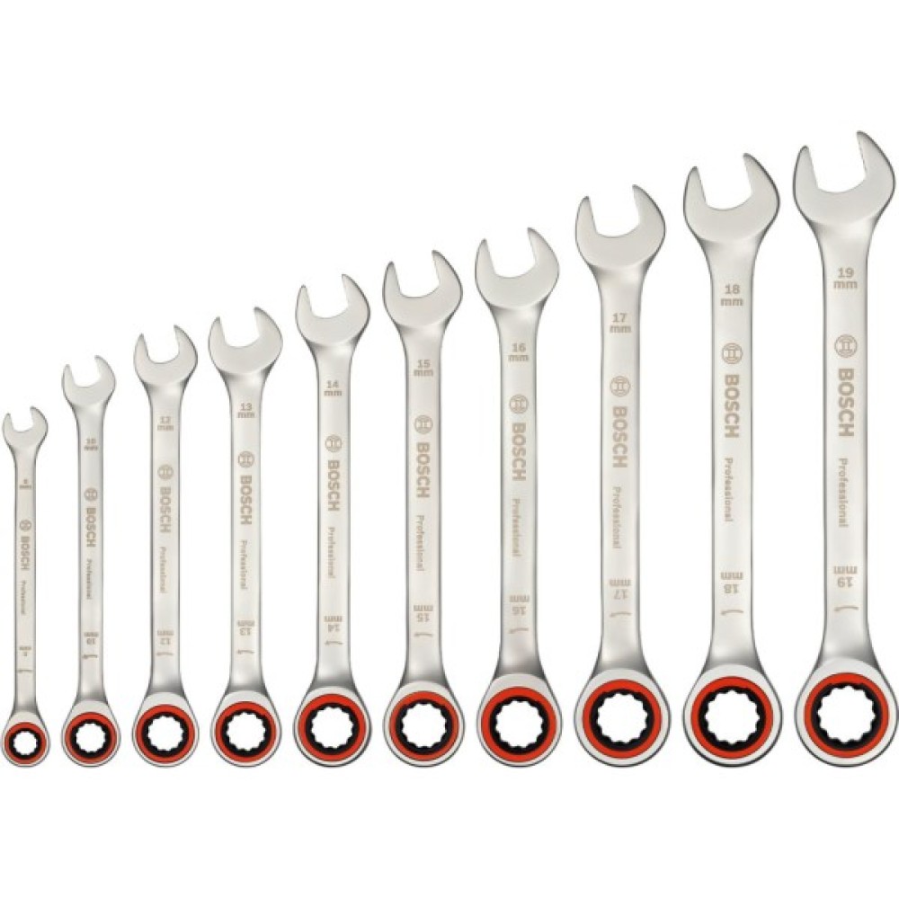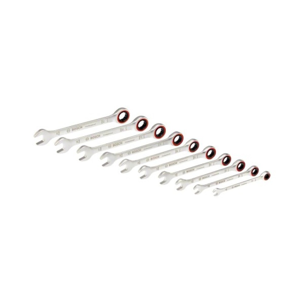 Універсальний набір з 10 предметів містить рожкові ключі найпоширеніших розмірів. Всі накидні ключі підходять для широкого спектру застосувань, оскільки кожен ключ поєднує в собі ріжковий і накидний ключі в одному інструменті. Всі рожково-накидні ключі чудово підходять для роботи в обмеженому просторі, оскільки тріскачка без зубців вимагає кута повороту менше 1 градуса.