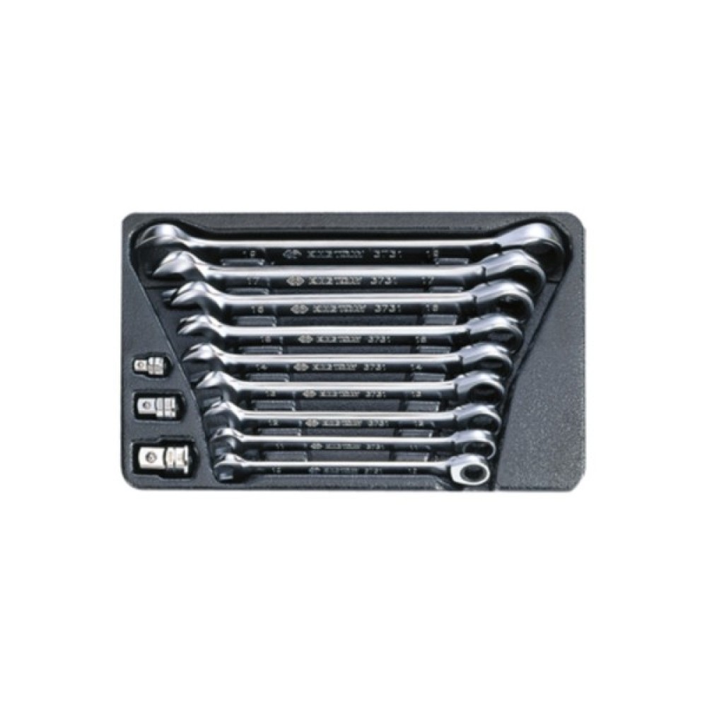 Набір ключів ріжково-накидних з тріскачкою 10-19мм та перехідники на 1/4", 3/8", 1/2" - Ключі комбіновані 3731М (10, 11, 12, 13, 14, 15, 16, 17, 19) - Перехідники 3732R (1/4", 3/8", 1/2")