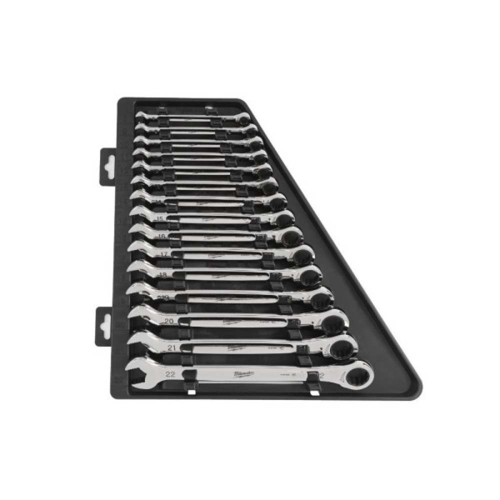 Ключ Milwaukee MAX BITE рожково-накидний з тріскачкою, 15шт, 8-22мм (4932464994)