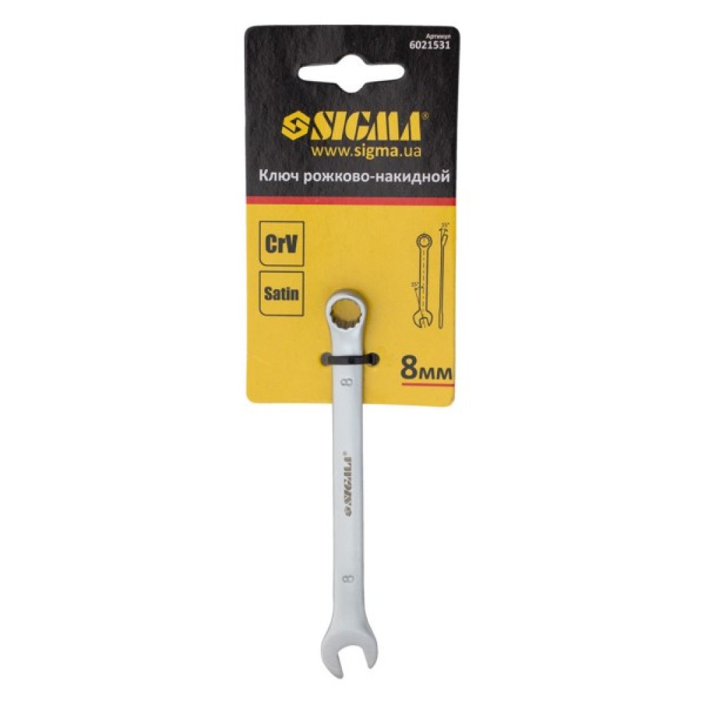 Ключ Sigma рожково-накидний 8мм CrV satine з підвісом (6021531)