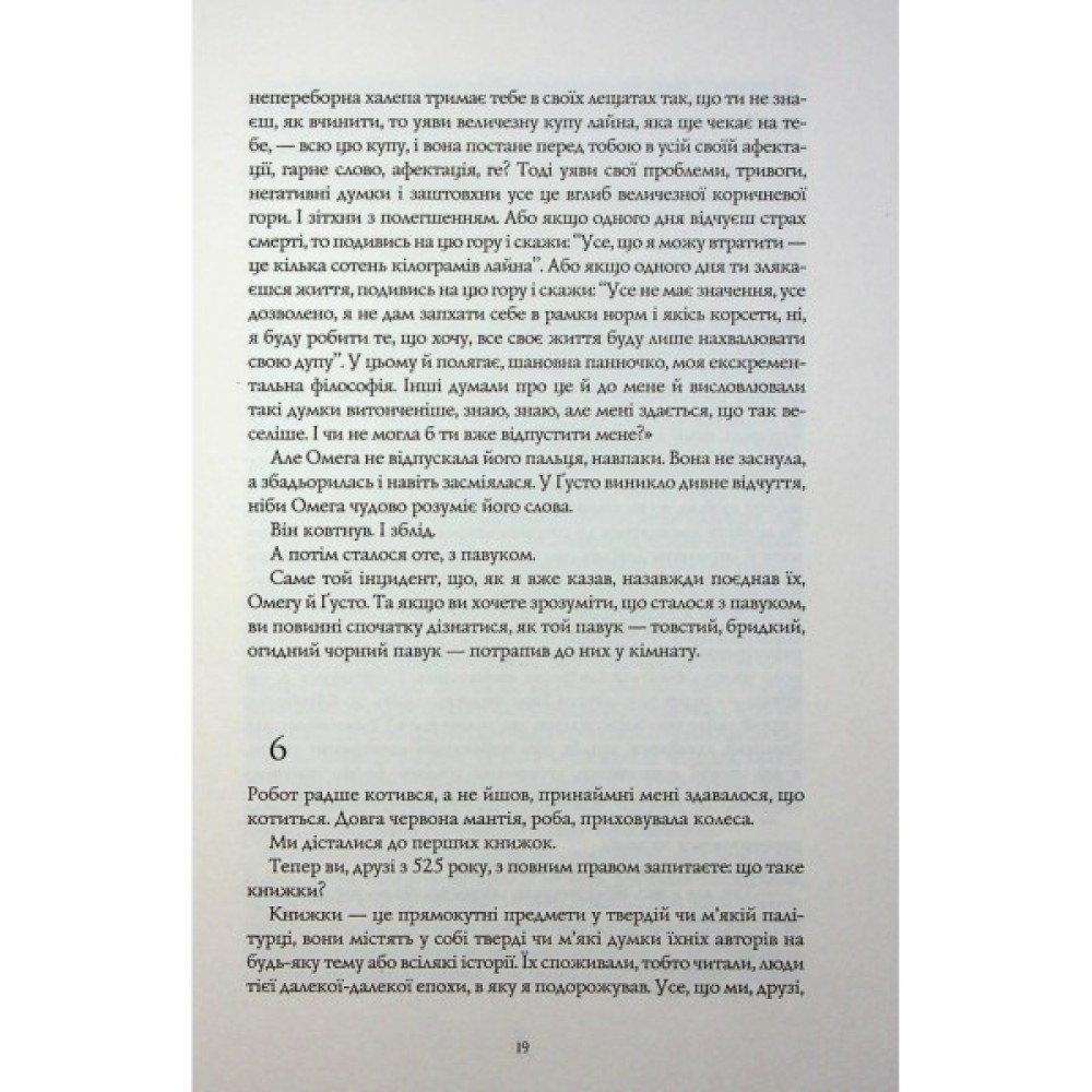 Врятувати Землю може тільки Омега Захаріас — перша людина з трьома третинами мозку й приголомшливими телекінетичними здібностями. До неї приєднуються її брат-програміст Альфа та кілька цікавих героїв, серед яких — винахідник екскрементальної філософії, тибетський монах, відважний артист перформансу й Порожнистий Пес. Історію Омеги розповідає й записує Еліас Циммерман — мандрівник у часі, який прибув із 2525 року. Він супроводжує дівчину та її друзів у їхній божевільній подорожі й водночас спостерігає за абсурдністю сьогодення.
