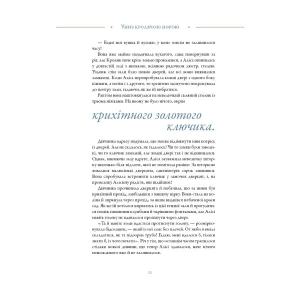 «Аліса в Країні Див» — безсмертна казкова повість Льюїса Керрола, яка протягом понад 150 років зачаровує читачів по всьому світу. Ця видатна літературна пам’ятка, перекладена десятками мов і не раз екранізована, продовжує захоплювати нові покоління дивовижними персонажами і химерними пригодами.