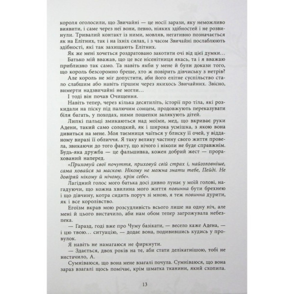 Й без того ризикове життя дівчини набуває нових загроз, адже її вчинок привернув увагу вищих еліт. Тепер Пейден доведеться взяти участь у небезпечних Іграх Очищення, які призначені для демонстрації сили обраних і відбору найкращих. Це вважається великою честю, проте простій людині уникнути смерті там дуже важко. Дівчині доведеться застосувати всі свої набуті вміння з виживання у ворожому світі. Проте ніхто не вчив Пейден боротися з почуттями, які виникають до того, хто вб’є її, щойно дізнається, що вона — Звичайна.